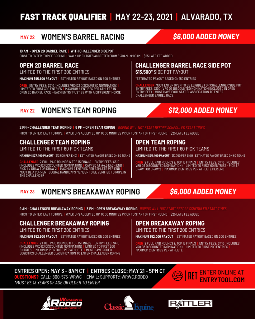 1 OF 8 WOMEN’S RODEO WORLD CHAMPIONSHIP FAST TRACK QUALIFIERS