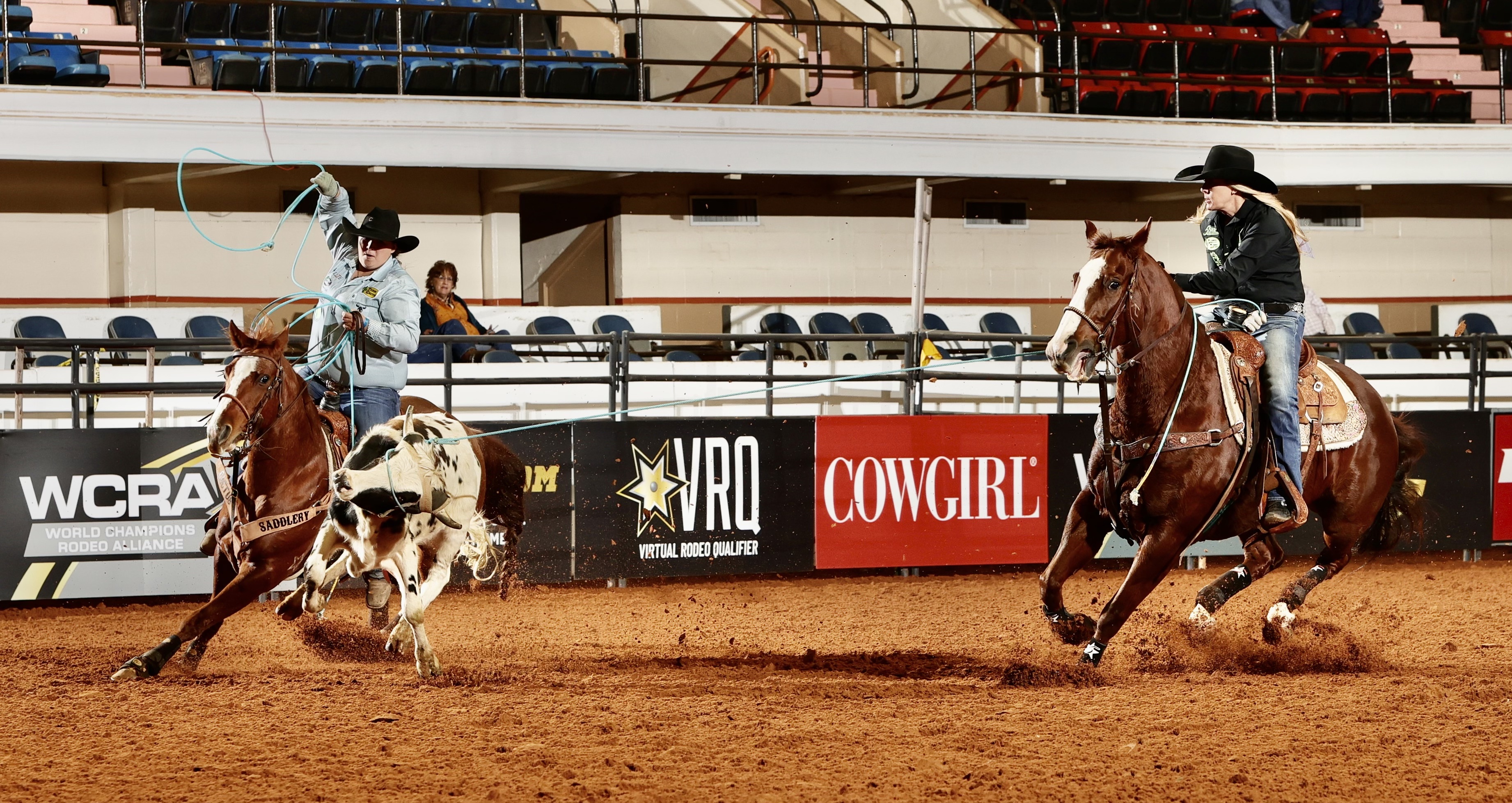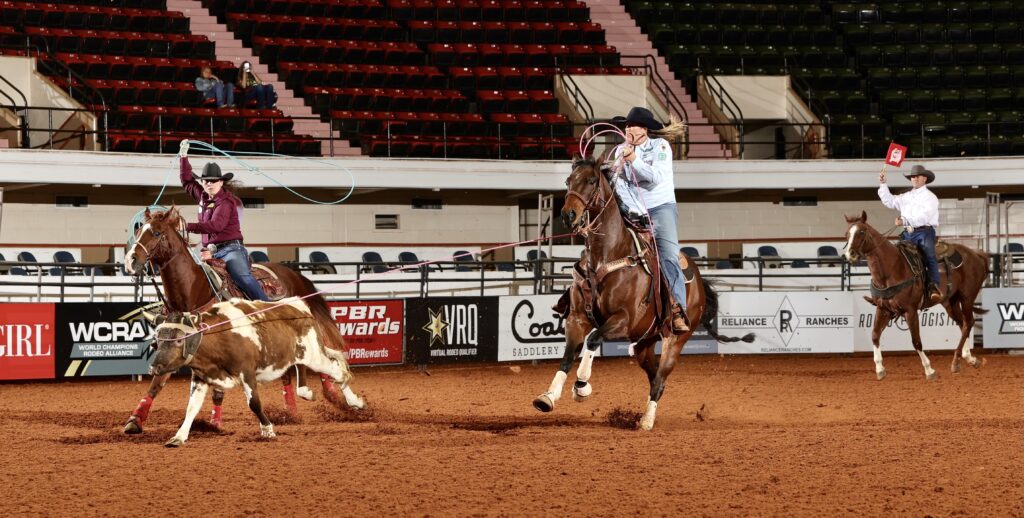 Breakaway roping isn’t the only boom in women’s rodeo right now. Fact is, cowgirls have been holding their own in the team roping for a very long time. But developing the skill set it takes to step onto the biggest stages to rope for tall dollars as both a header and a heeler is no easy feat. And a staggering 32 wolfy women are doing just that here this week at the World Champions Rodeo Alliance’s $750,000 Women’s Rodeo World Championship at the South Point Hotel, Casino and Spa in Las Vegas.
